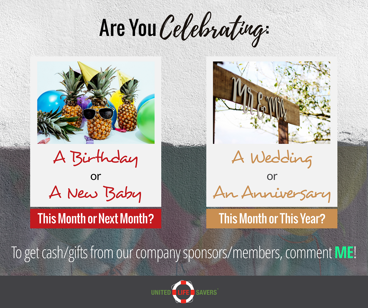 Up to $2,000 as people celebrating a new baby, birthday, graduation, wedding or anniversary join for $1 or $10 to get a minimum $25 cash/gifts!